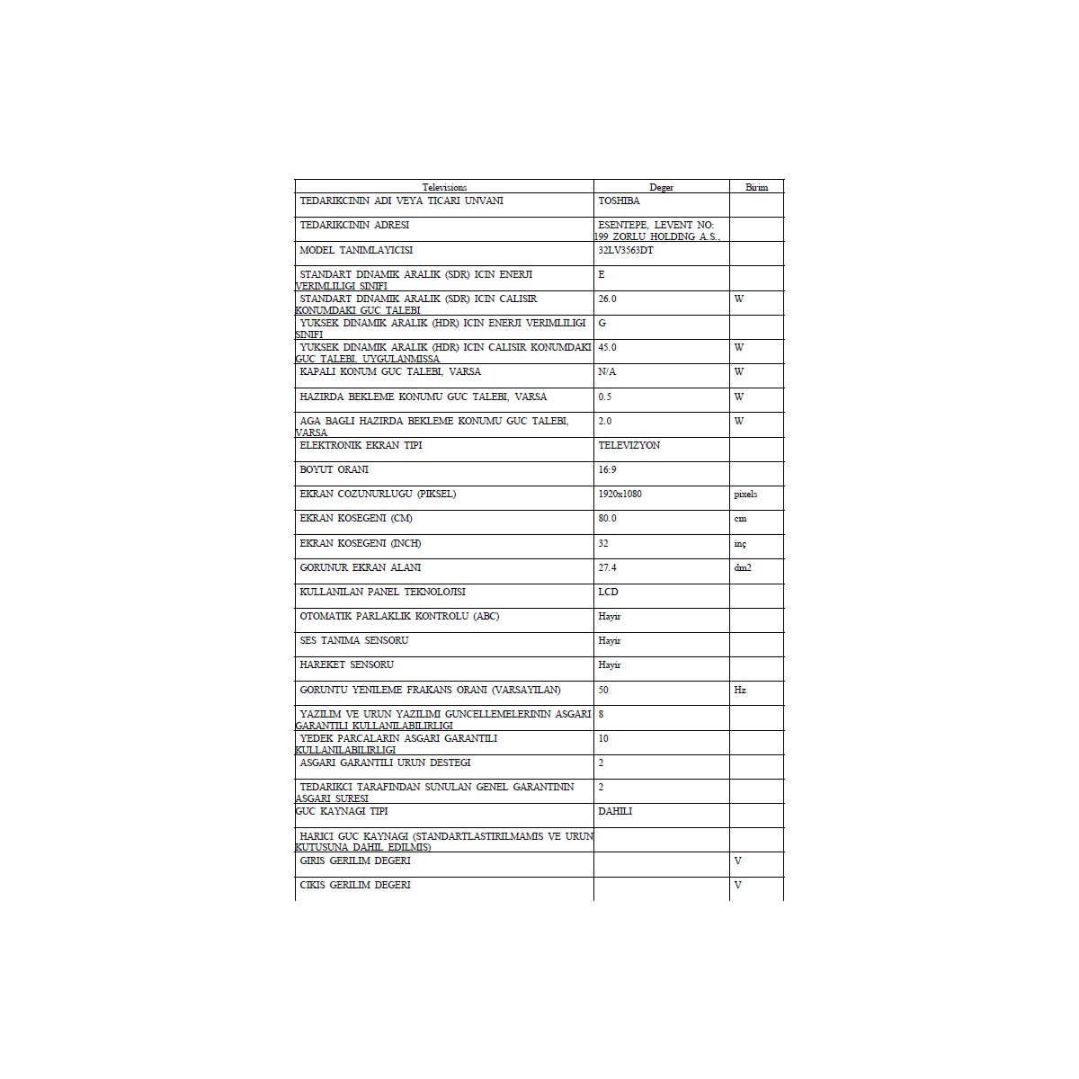 Toshiba 32LV3563DT 32” 80 Ekran Uydu Alıcılı Full HD Vidaa TV