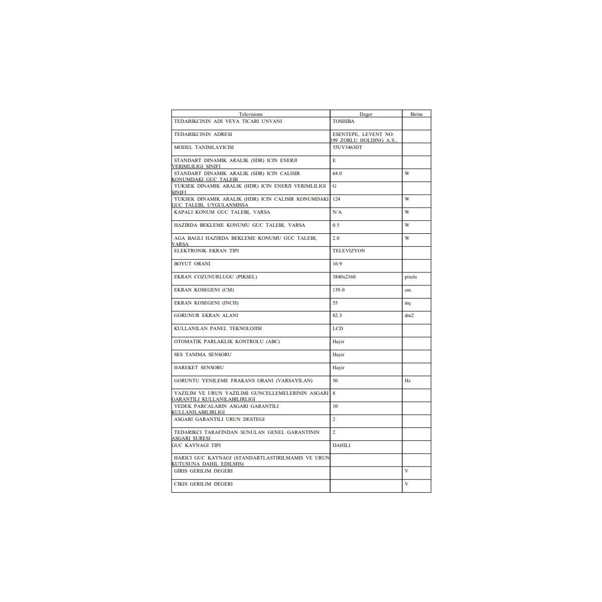 | Garanti Süresi (Ay) | |