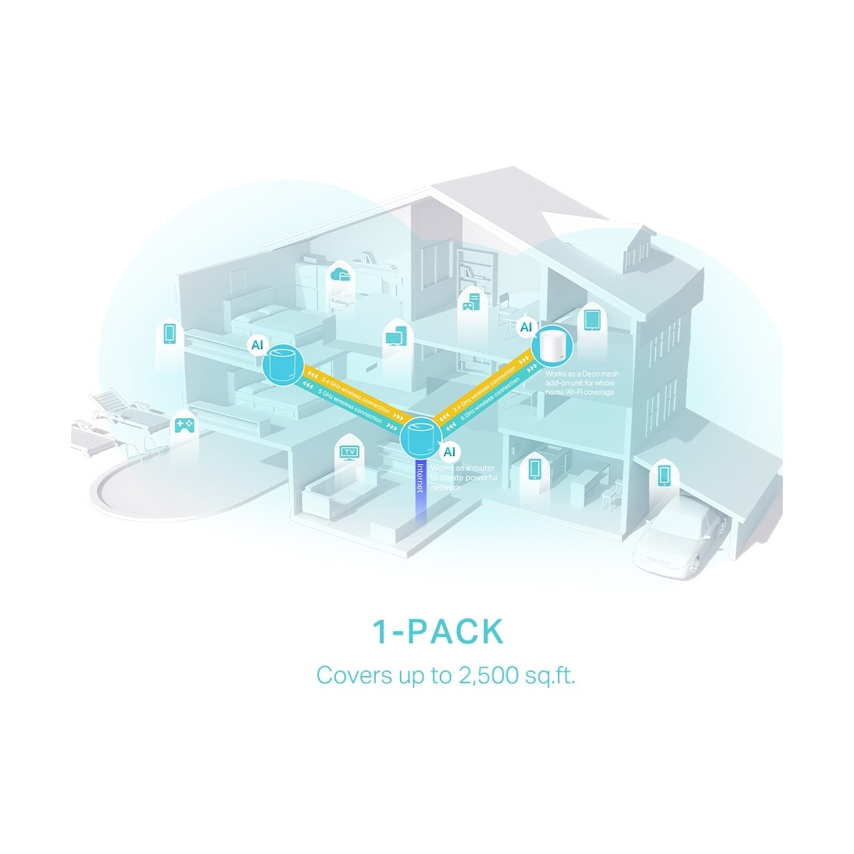 TP-Link Deco X50 (1-Pack) | Wi-Fi 6 Mesh Sistemi | AX3000 Mbps Hız | Fiber Uyumlu | Çift Bant | Gigabit Port | 150 Cihaz | 230 m² Kapsama | WPA3 | Mobil Uygulama ile Kolay Kurulum