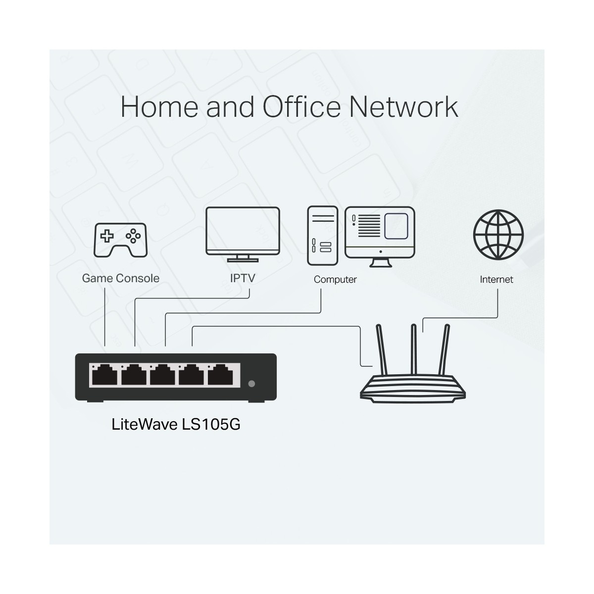 TP-Link LS105G 5 Port 10-100-1000 Mbps Switch Metal Kasa