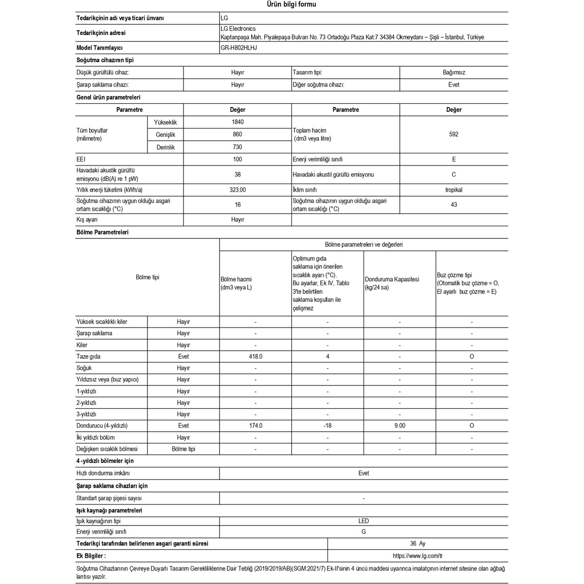 | Garanti Süresi (Ay) | |