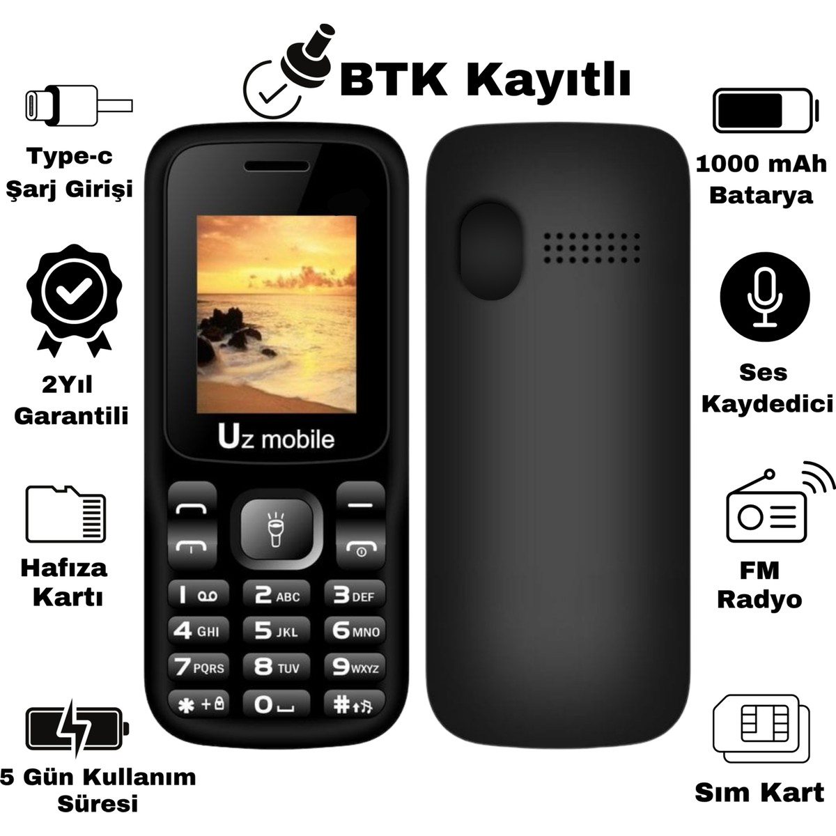 Uz Mobile – Çift Sım Kartlı, Yerli Üretim Tuşlu Telefon (Uz Türkiye Garantili)