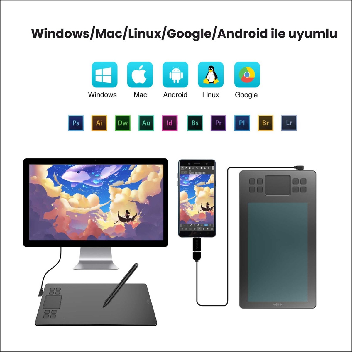 Veikk A50 10 x 6″ 8192 Levels 5080 LPI Grafik Tablet + Kalem