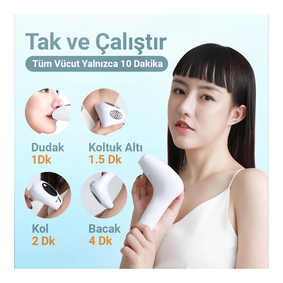 Cihaz Çalıştırma Notları ; Kullanım esnasında göze yaklaştırmayınız. Kullanımdan sonra, cildin kızarması normaldir. Kızaran bölgeyisoğuk su veya ıslak bir bezle soğutabilirsiniz. Su bazlı jel ürünler gibi diğer kozmetiklerle birlikte kullanmayınız. Cildiniz ne kadar koyuysa, tepkime süresi o kadar artar veertelenebilir. Güvenli olması açısından, yoğunluk seviyesini artırmakiçin 2 saat beklemeniz önerilir. Cildinize bakım yapmaya, nemlendirmeye ve güneş kremikullanmaya devam edebilirsiniz. Cihazın soğumasını engellememek için hava giriş ve çıkış yerlerinintıkanmamasına özen gösterin. Cihaza yapışan saçlar bazı boşluklara sebep olabilir ancak budurum cihazın performansını ve normal kullanımını etkilemez. İlerleyen dönemlerde ampulün iç duvarı farklı derecelerde siyahlık gösterecektir, bu tüplerin normal yaşlanma sürecinin birsonucudur, endişelenmeyin ve normal şekilde kullanmaya devamedin. Bu ürün suya dayanıklı değildir. Herhangi bir hata durumunda derhal makineyi kapatınız. Makineyi güçlü manyetik alanların yakınında, nemli, tozlu veyayüksek sıcaklıktaki ortamlarda saklamayınız. Çocukların erişemeyeceği bir yerde saklayınız. Amacı dışında kullanımı yasaktır. Yetkili kişiler dışında kimsenin bu makineyi açmasına izinvermeyiniz, aksi takdirde elektrik çarpması tehlikesi olabilir.