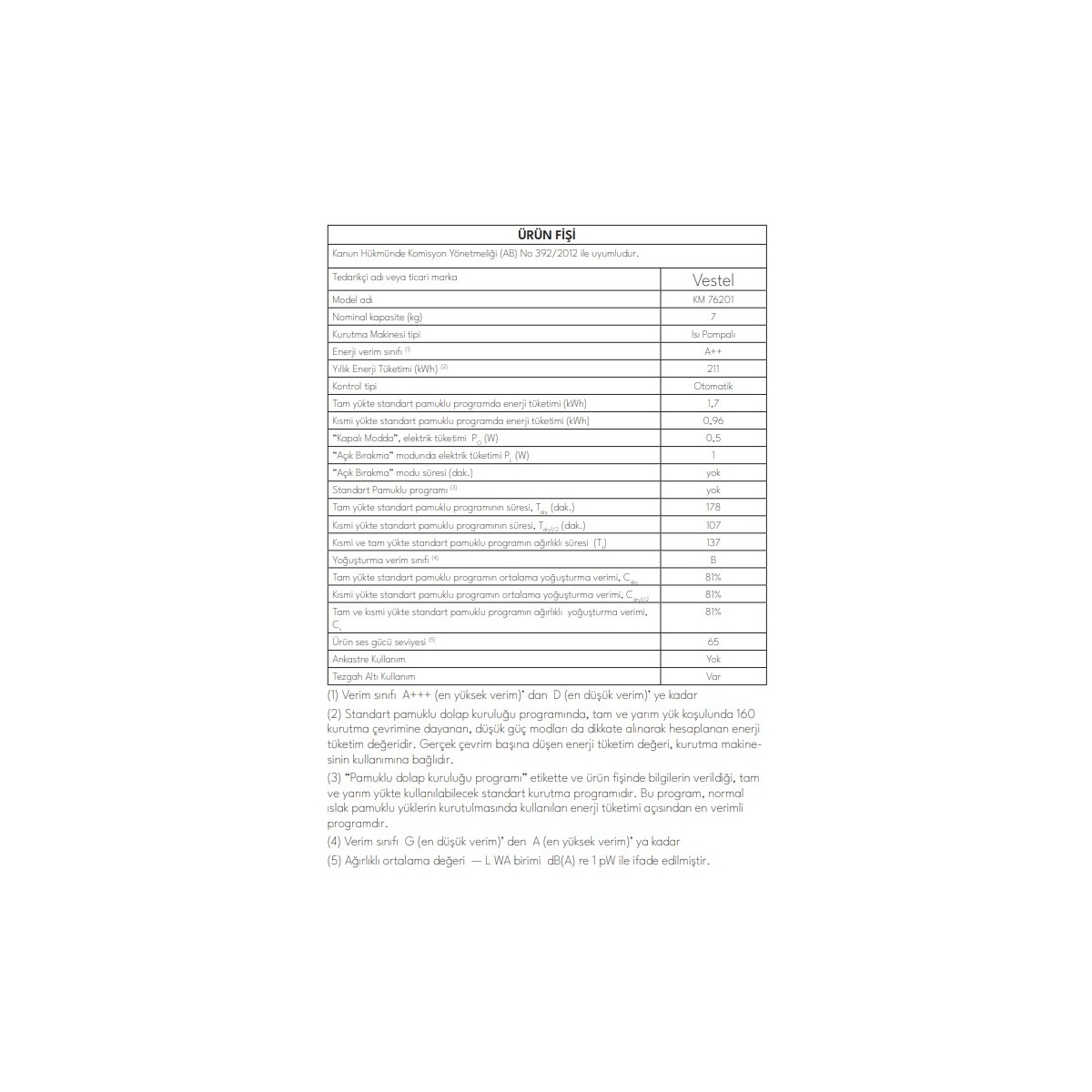 Vestel KM 76201 7 kg Isı Pompalı Kurutma Makinesi — yüksek enerji verimliliği ve gelişmiş kurutma teknolojisi ile çamaşır kurutmayı zahmetsiz ve ekonomik hale getirir. Geniş program seçenekleri ve kullanıcı dostu özellikleriyle günlük yaşamınızı kolaylaştırır.