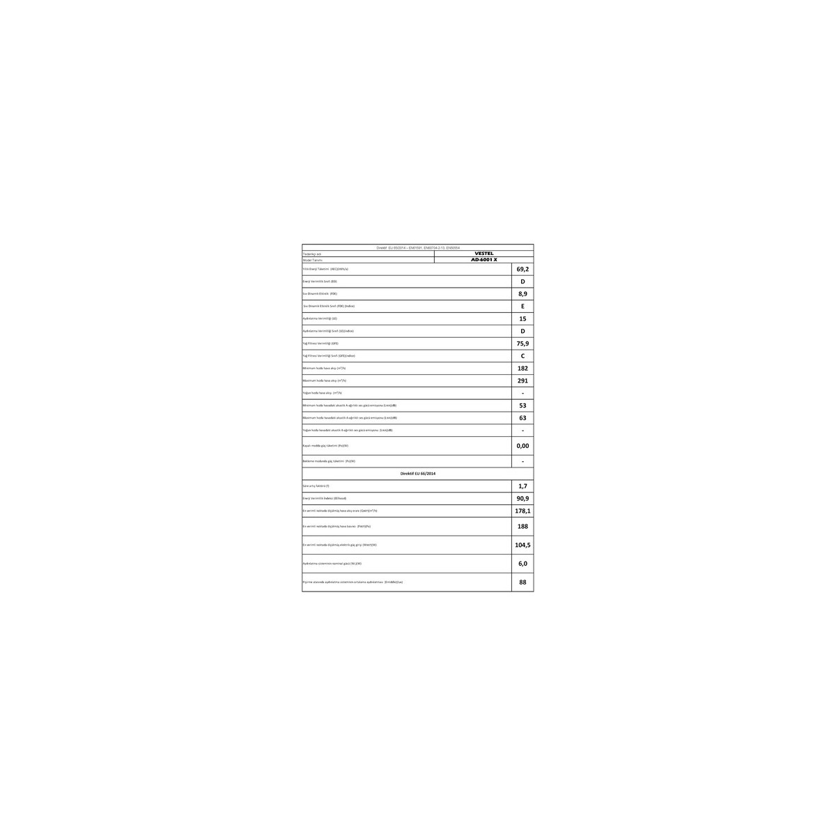 Vestel AD-6001 X Ankastre Davlumbaz