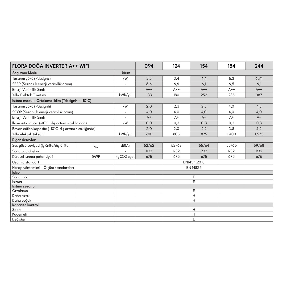 - Sezonsal Enerji Verimliliği (SEER)6.1