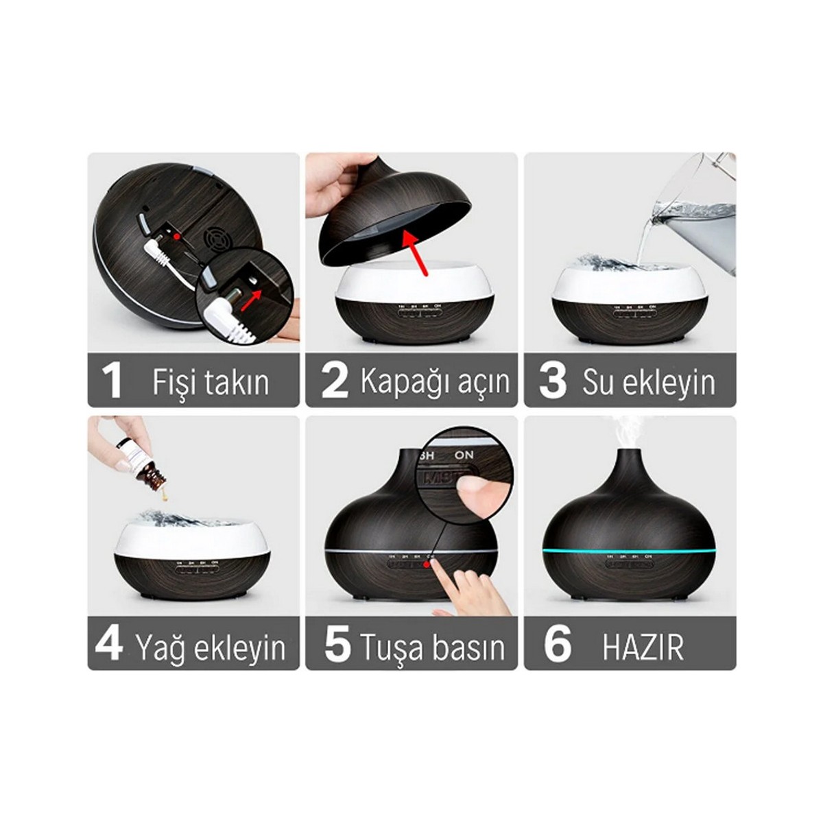 Ürün harika sessiz çalışıyor, buhar vermesi çok iyi esansiyel kokular ile kullanıyorum bir harika. Kesinlikle almayı düşünenlere tavsiyemdir. Ayrıca satıcı çok ilgili bir arkadaş, işinden dolayı sınsuz teşekkür eder hayırlı işler dilerim. 🙋‍♂️