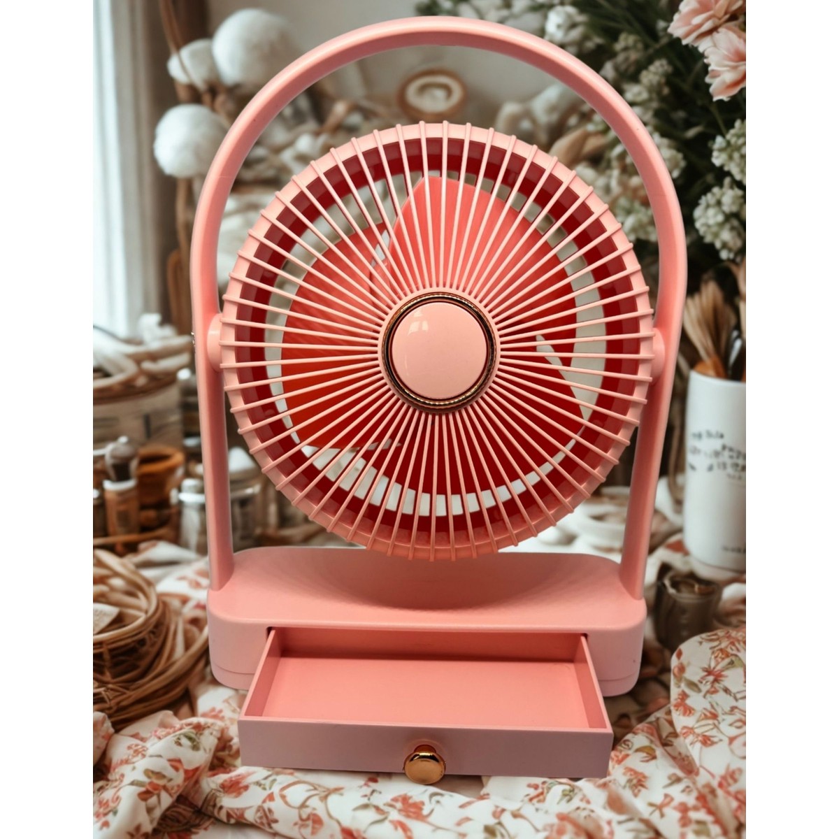Zarif Pembe Rengiyle Masanıza Şıklık Katarken Sıcak Günlerde Nefes Aldıran Taşınabilir Çözüm.