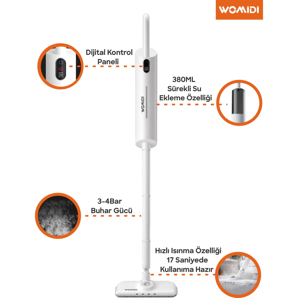 Womidi Bm1 Çok Fonksiyonlu 13 Parça Buharlı Dikey Paspas ve Temizleyici – Buharlı Mop – Dijital Ekranlı Buharlı Temizlik Makinesi