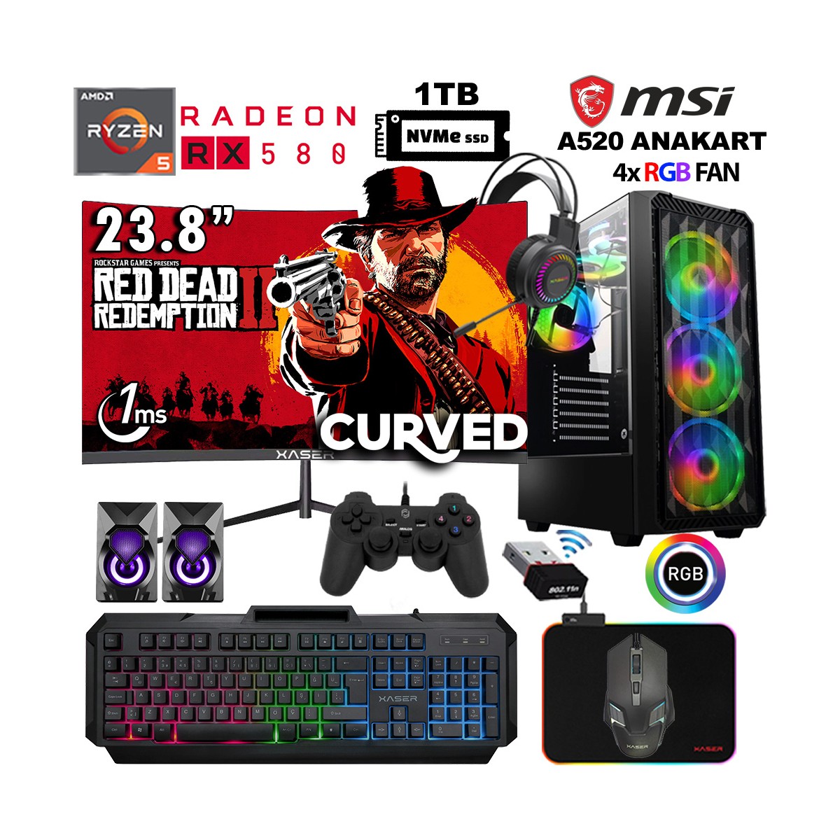 Xaser Armor X60 Ryzen 5 5500 32GB Ram 1tb M.2 Nvme SSD 8gb RX580 24″ Curved Masaüstü Oyuncu Bilgisayarı