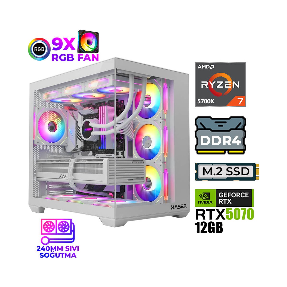 Xaser Master x6 Ryzen 7 5700X 32GB Ram 1TB M.2 NVMe SSD 12GB RTX5070 Sıvı Soğutmalı Oyuncu Bilgisayarı