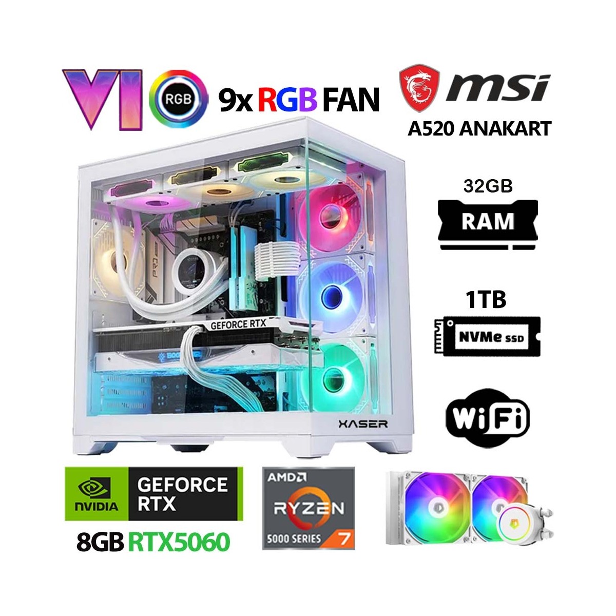 Xaser Sword X60 Ryzen 7 5700X 32GB Ram 1tb M.2 Nvme SSD 8gb RTX5060 Sıvı Soğutmalı Oyuncu Bilgisayarı