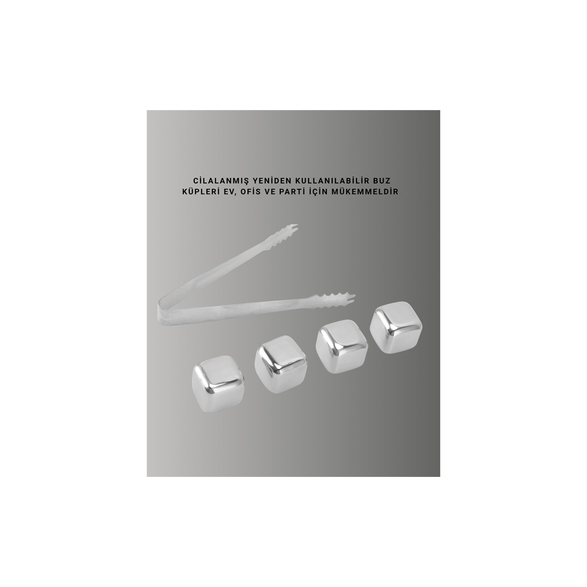 Yeniden Kullanılabilir 304 Çelik Metal Buz Küpleri 4’lü Set