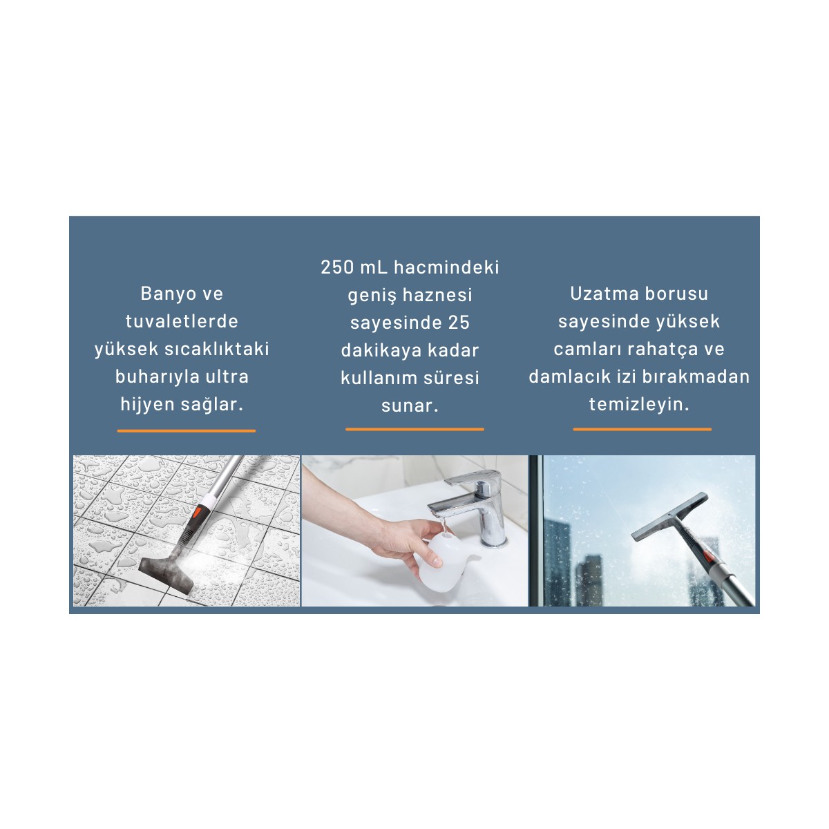 İçinden 3 farklı başlık çıkıyo her alana uygun bi başlığı var özellikle derz aralarını temizlemekte çok işime yaradı ovalayıp çıkaramadığım kirleri buhar ısısıyla çıkardı