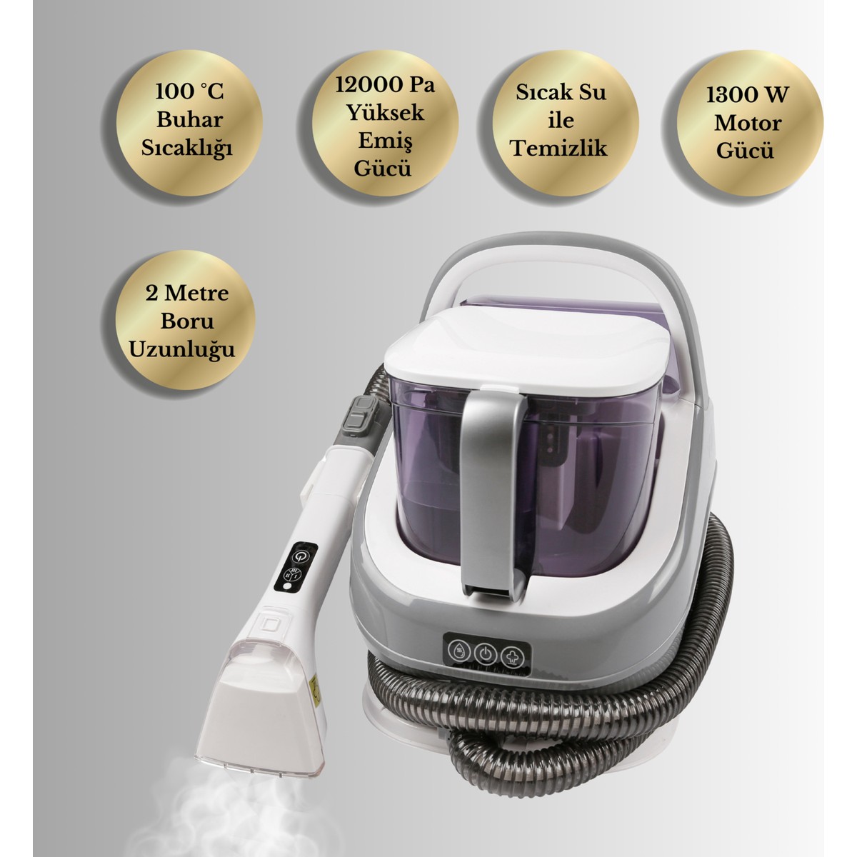 Yüksek emiş gücü sayesinde halı ve koltuklarınıza nüfuz eder toz ve kirleri etkili bir şekilde çeker,böylece hem temizlemesini hem de kurumasını hızlandırır.