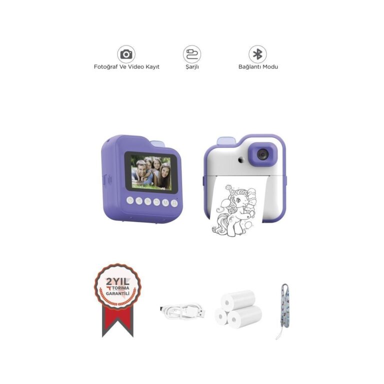 Torima TRM-CMR15 Mor Dijital Video Kayıt Fotoğraf Çocuk Kamerası Anlık Termal Resim Kağıt Baskılı Yazıcı